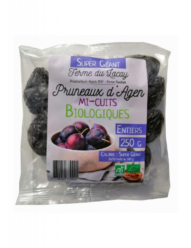 The half-cooked organic Pruneau d'Agen certifies that it is a natural prune, directly put in a bag and pasteurized to preserve it naturally. It is therefore better in taste and provides more vitamins than a dry prune rehydrated with water (which represents 95% of the Agen prunes sold on the market).