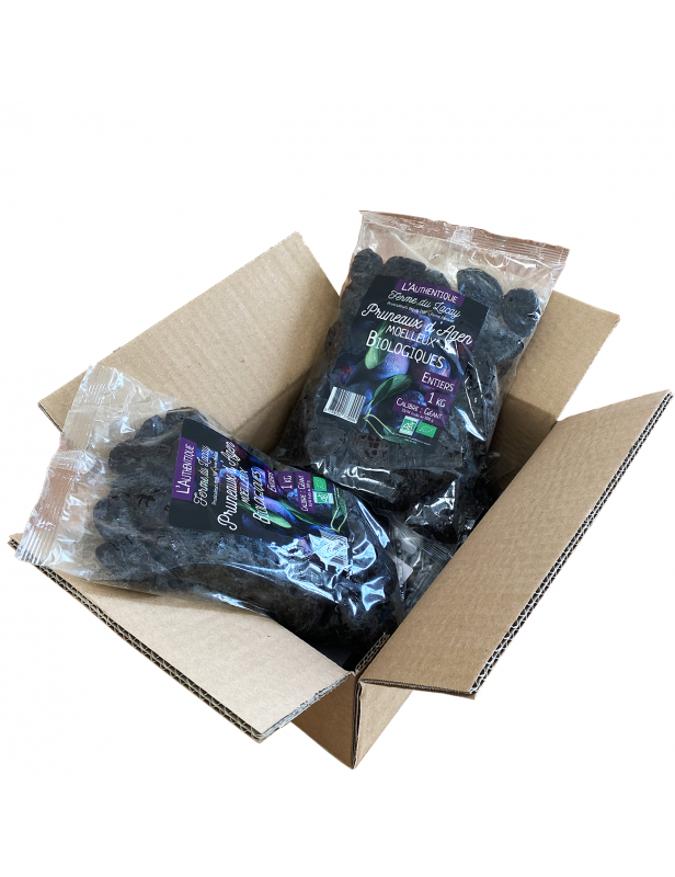 The half-cooked organic Pruneau d'Agen certifies that it is a natural prune, directly put in a bag and pasteurized to preserve it naturally. It is therefore better in taste and provides more vitamins than a dry prune rehydrated with water (which represents 95% of the Agen prunes sold on the market).
